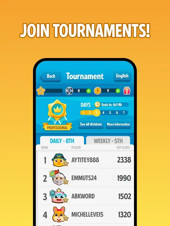 Increase your vocabulary in a fun and competitive environment by playing in new languages!
