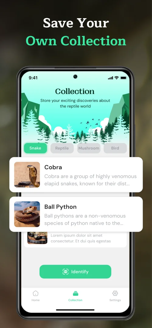 Create your personal wildlife collection by saving identified snakes and tracking previous scans. Build your own reptile discovery journal and revisit species anytime.