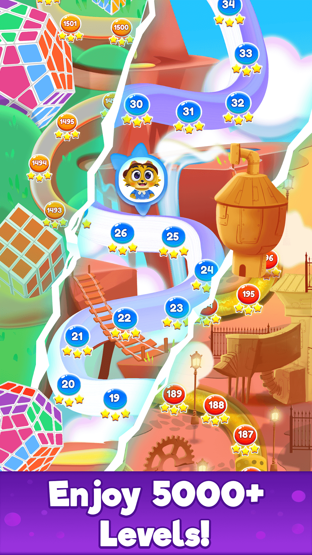 Strategic Match-3 Gameplay: Develop skills for efficient bubble shooting and level clearing.