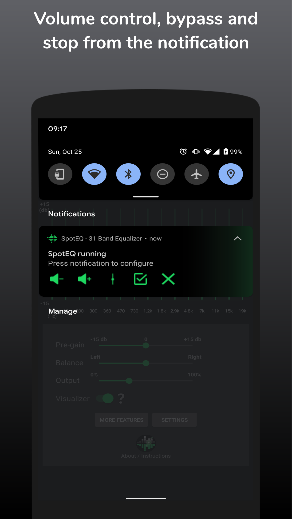 • Real-time audio adjustments with smooth frequency sliders