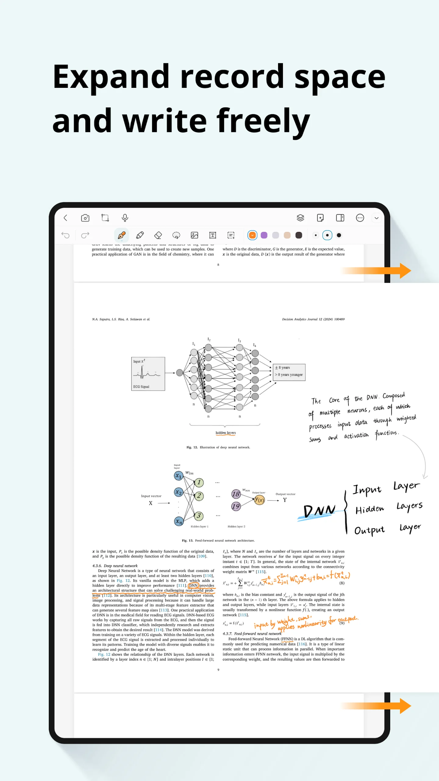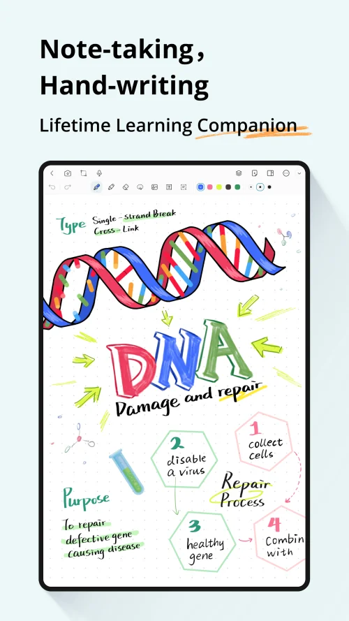 Enjoy a fluid, paper-like writing experience with customizable pens, highlighters, and brushes. Adjust thickness, opacity, and colors to match your style. Palm rejection and precision input make writing feel effortless.