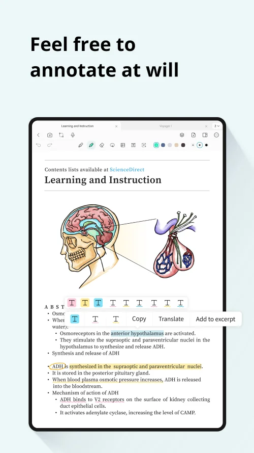 Import PDFs and mark them up with ease. Highlight text, add comments, draw diagrams, or sign documents directly. Perfect for studying, reviewing contracts, or editing work files.