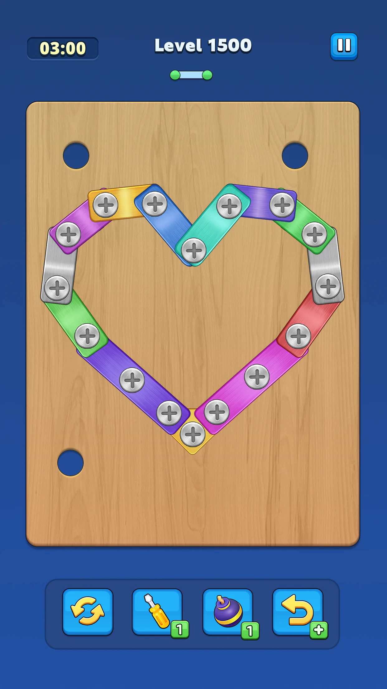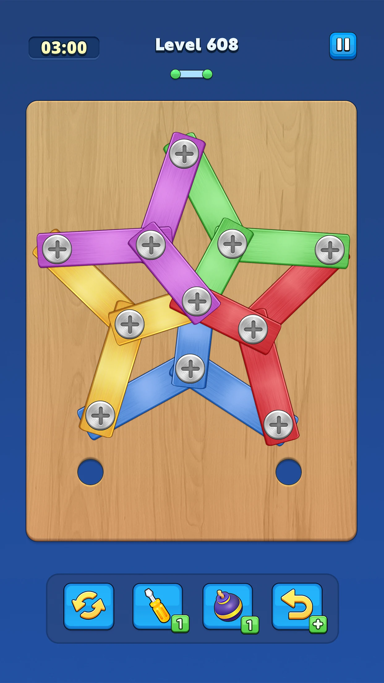 Solve a wide variety of screw and bolt puzzles with increasing difficulty.