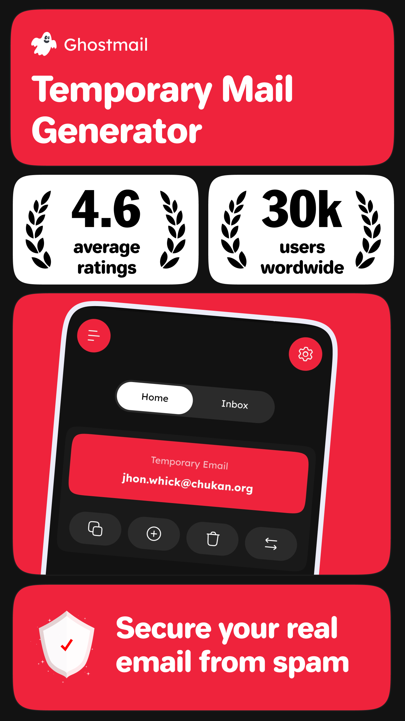 Protect your privacy with instant disposable emails. Receive messages securely, avoid spam, and stay anonymous with Temp Mail by GhostMail.